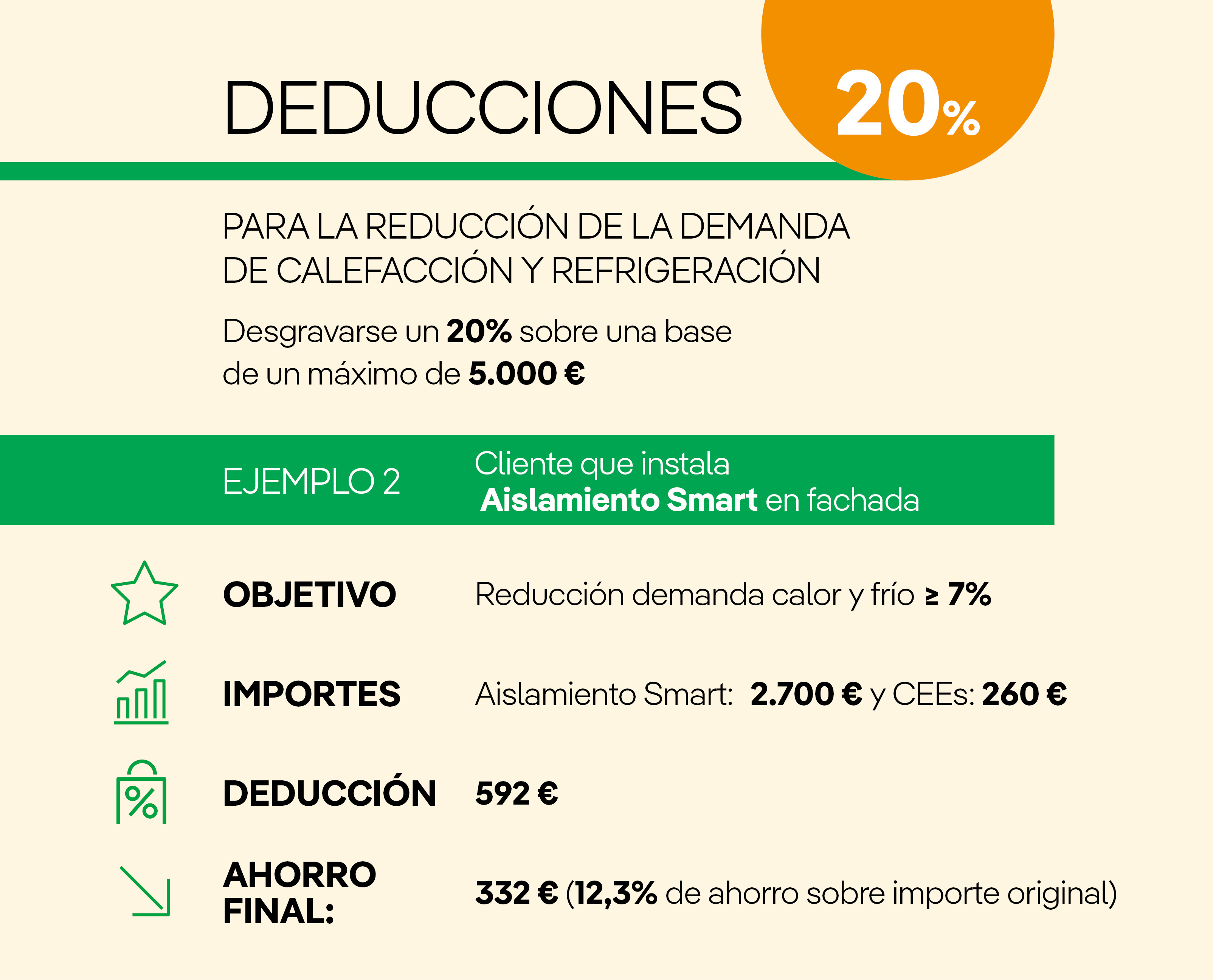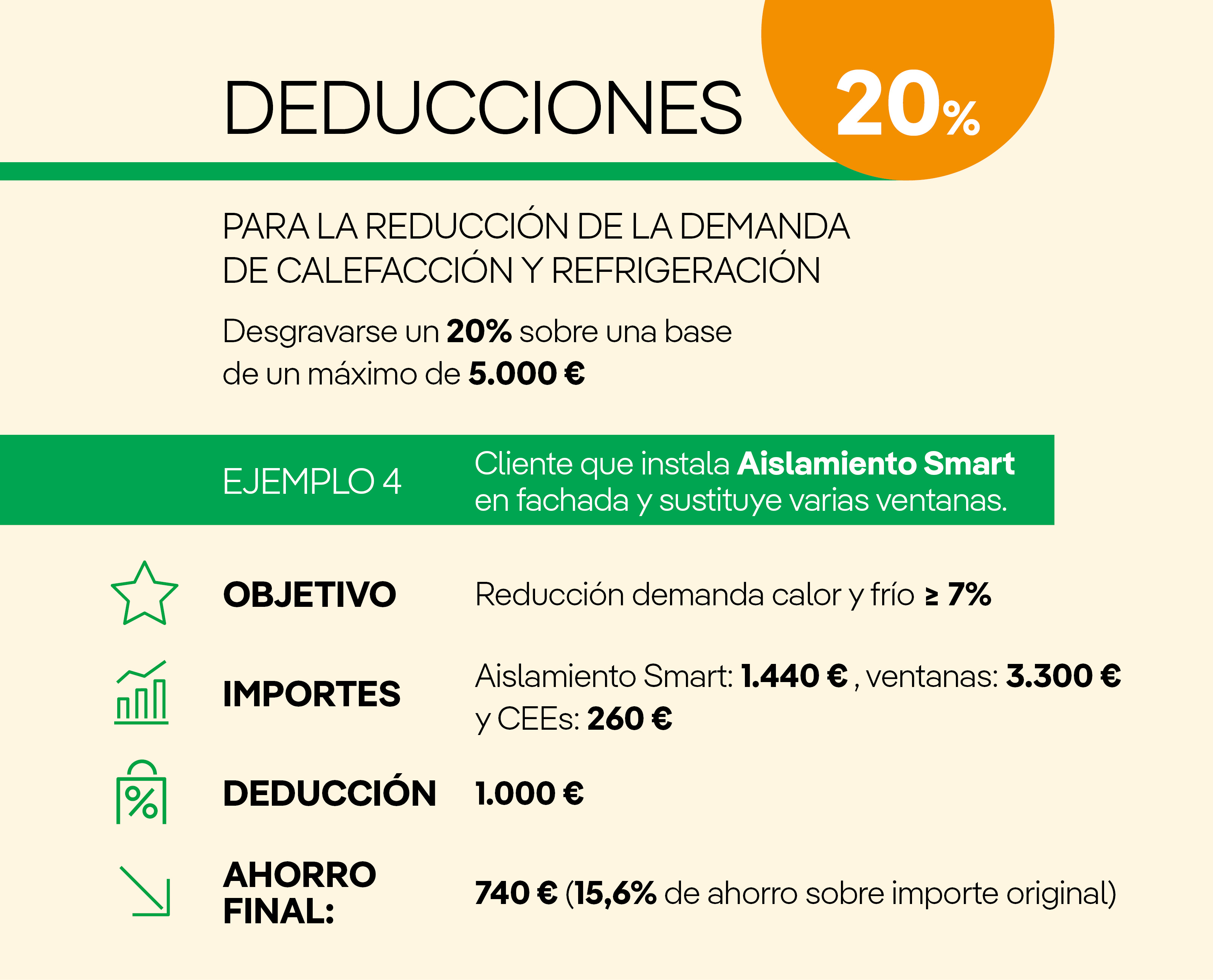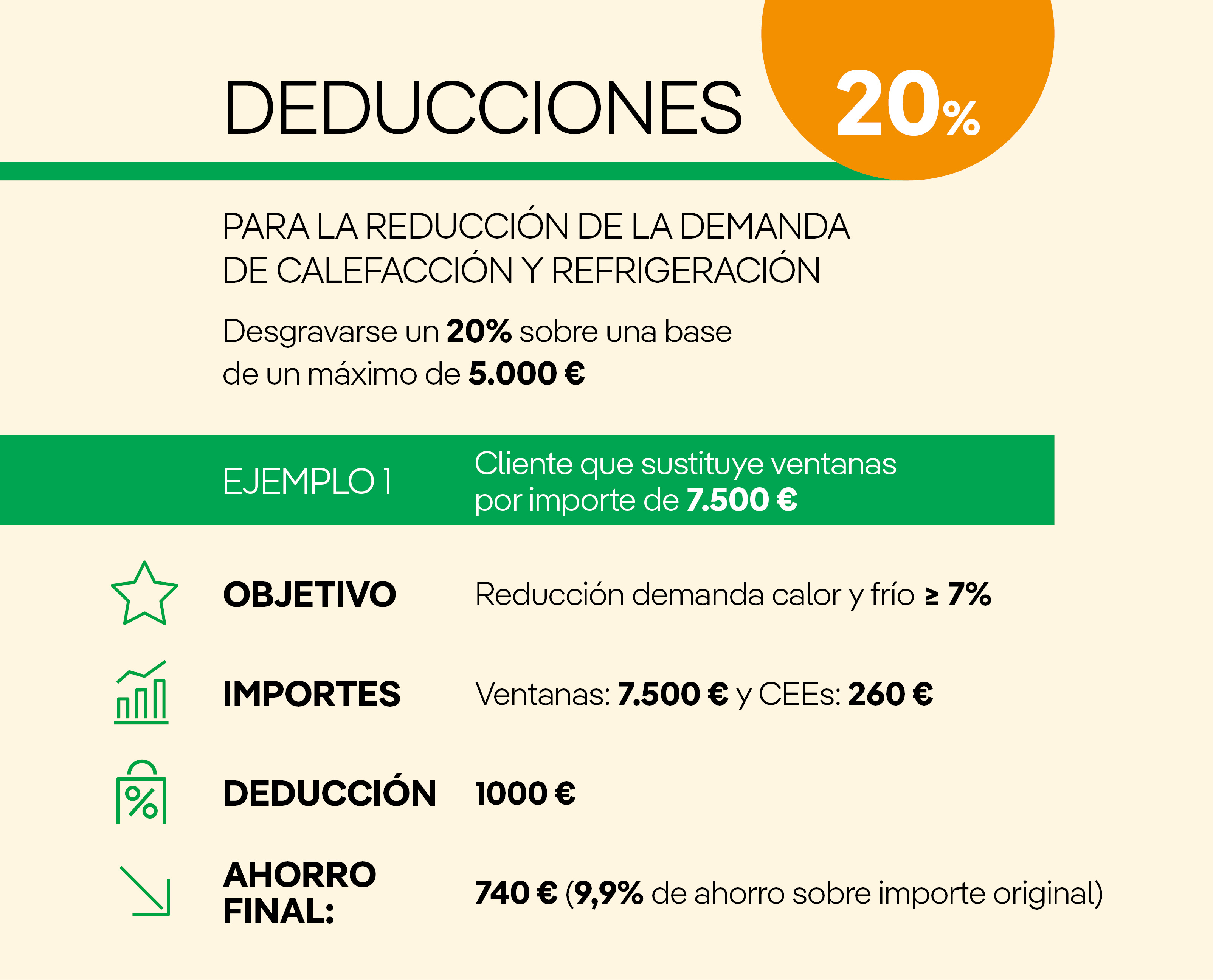 - Deducción del 20% por obras para la reducción de la demanda de calefacción y refrigeración.