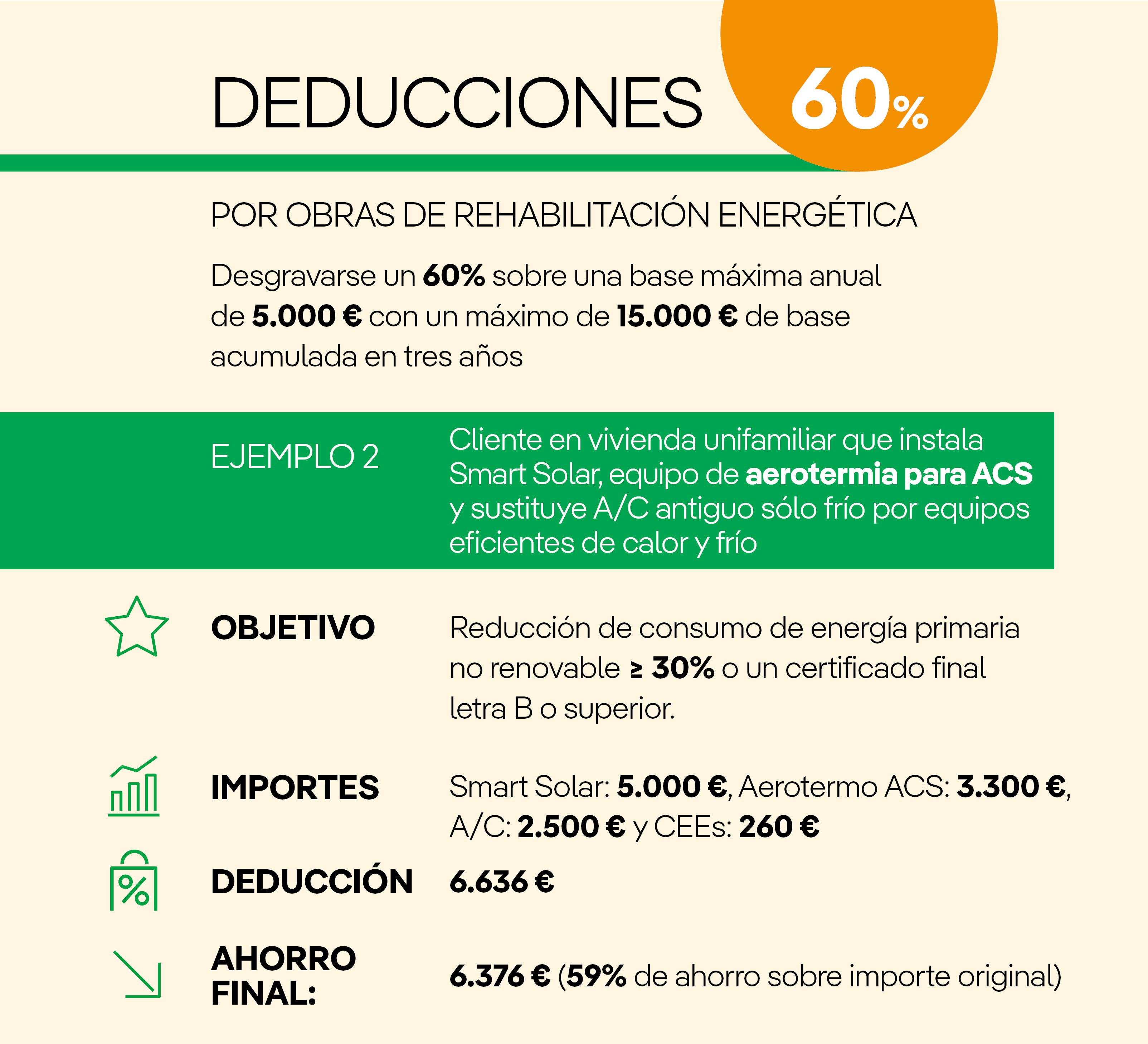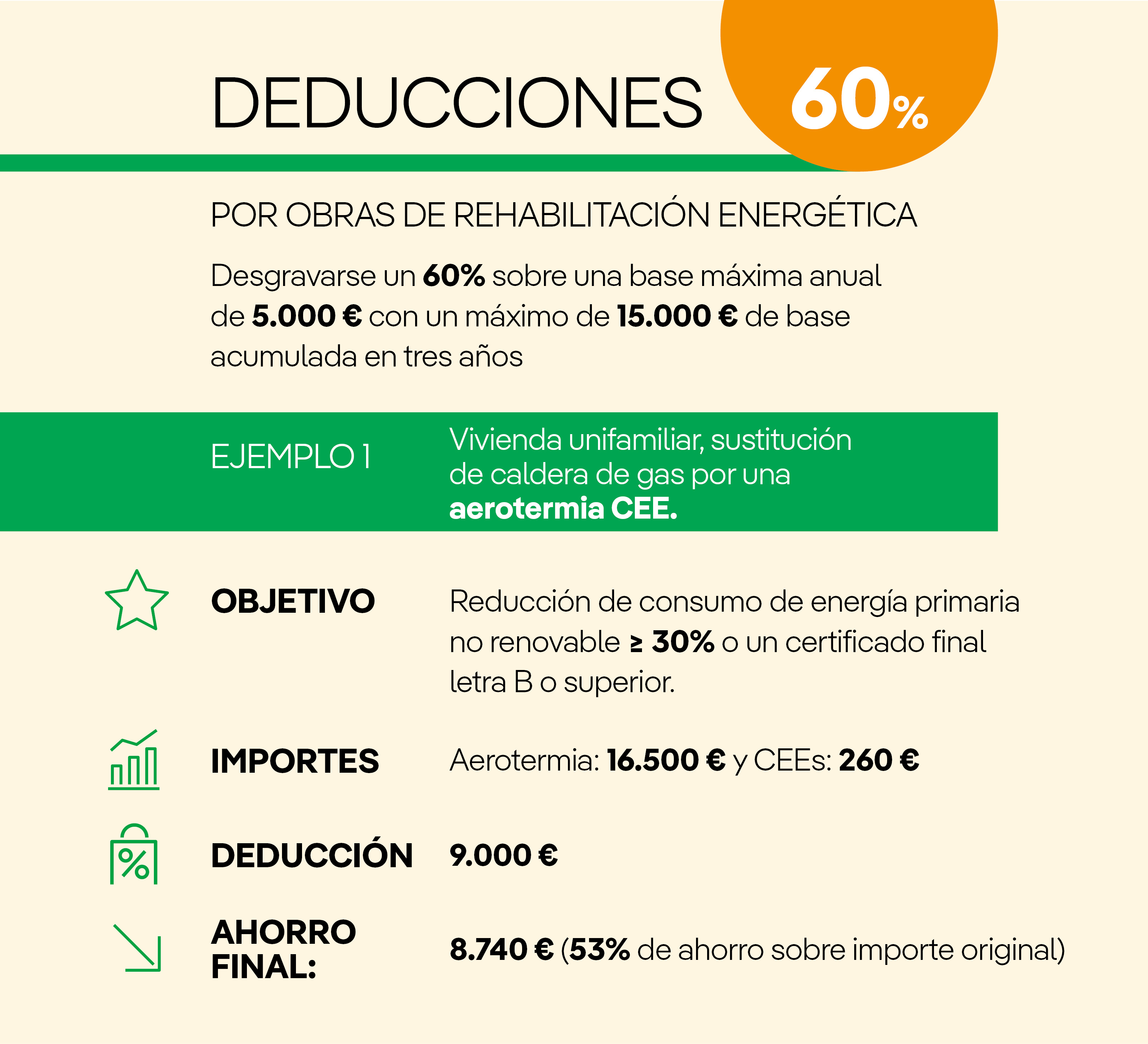 - Deducción del 60% por obras de rehabilitación energética.